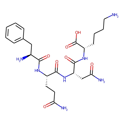 | CCSBASE_07D8E7FCA3 | FQNK | [M+Na]+ | 559.27 | 243.9 | N[C@@H](CC1=CC=CC=C1)C(=O)N[C@@H](CCC(=O)N)C(=O)N[C@@H](CC(=O)N)C(=O)N[C@@H](CCCCN)C(=O)O | peptide | 1 | 1 | DT | stepped-field | |
