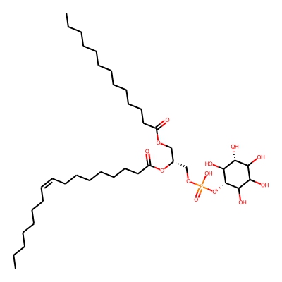 | CCSBASE_D43F011AB3 | PI(14:0/16:0) | [M-H]- | 781.48727 | 280.1 | [C@]([H])(OC(CCCCCCCCCCCCC)=O)(COP(=O)(O)O[C@@H]1C(O)[C@H](O)C(O)C(O)C1O)COC(CCCCCCCCCCCCCCC)=O | lipid | 1 | 3 | DT | stepped-field | |