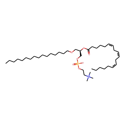 | CCSBASE_9C4AE2EA04 | PC(o36:4) | [M+H]+ | 768.59123 | 297.2 | [C@](COP(=O)([O-])OCC[N+](C)(C)C)([H])(OC(CCC/C=C\C/C=C\C/C=C\C/C=C\CCCCC)=O)COCCCCCCCCCCCCCCCC | lipid | 1 | 3 | DT | stepped-field | |