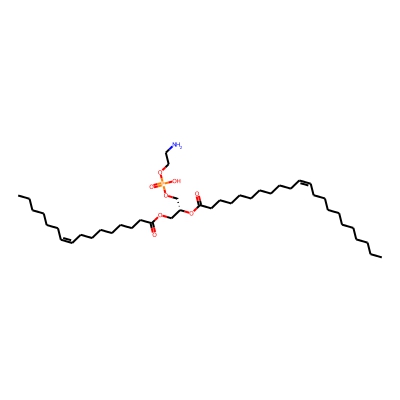 | CCSBASE_63E56E11A4 | PE(38:3) | [M+H]+ | 770.5705 | 297.1 | [C@](COP(=O)(O)OCCN)([H])(OC(CCCCCCCCCCC/C=C\C/C=C\CCCCC)=O)COC(CCCCCCC/C=C\CCCCCC)=O | lipid | 1 | 3 | DT | stepped-field |