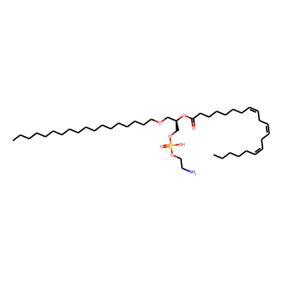 | CCSBASE_659FB2A0AA | PE(o38:3) | [M+H]+ | 756.5912300000001 | 297.6 | [C@](COP(=O)(O)OCCN)([H])(OC(CCCCCC/C=C\C/C=C\C/C=C\CCCCC)=O)COCCCCCCCCCCCCCCCCCC | lipid | 1 | 3 | DT | stepped-field | |