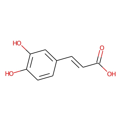 | CCSBASE_A5902F1BE6 | Caffeic Acid | [M+H-H2O]+ | 163.0395 | 129.9 | C1=CC(=C(C=C1/C=C/C(=O)O)O)O | small molecule | 1 | 4 | DT | single field, calibrated with Agilent tune mix (Agilent) | |