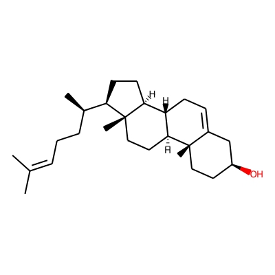 | CCSBASE_F024B12F71 | Desmosterol | [M+H-H2O]+ | 367.3364 | 199.4 | C[C@H](CCC=C(C)C)[C@H]1CC[C@@H]2[C@@]1(CC[C@H]3[C@H]2CC=C4[C@@]3(CC[C@@H](C4)O)C)C | small molecule | 1 | 4 | DT | single field, calibrated with Agilent tune mix (Agilent) | |