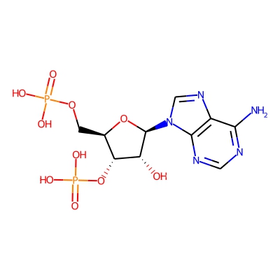 | CCSBASE_13D037155E | Adenosine 3',5'-diphosphate | [M+H]+ | 428.0372 | 182.5 | C1=NC2=C(C(=N1)N)N=CN2[C@H]3[C@@H]([C@@H]([C@H](O3)COP(=O)(O)O)OP(=O)(O)O)O | small molecule | 1 | 4 | DT | single field, calibrated with Agilent tune mix (Agilent) | |