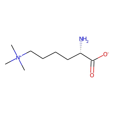 | CCSBASE_DD197D488E | N6,N6,N6-Trimethyl-L-lysine | [M+H]+ | 189.1603 | 142.0 | C[N+](C)(C)CCCC[C@@H](C(=O)[O-])N | small molecule | 1 | 4 | DT | single field, calibrated with Agilent tune mix (Agilent) | |