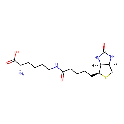 | CCSBASE_55693B33F5 | Biocytin | [M+H]+ | 373.1909 | 186.8 | C1[C@H]2[C@@H]([C@@H](S1)CCCCC(=O)NCCCC[C@@H](C(=O)O)N)NC(=O)N2 | small molecule | 1 | 4 | DT | single field, calibrated with Agilent tune mix (Agilent) | |