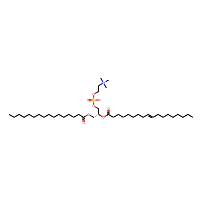| CCSBASE_DCEE82BED2 | 2-Oleoyl-1-palmitoyl-sn-glycero-3-phosphocholine | [M+H]+ | 760.5856 | 286.7 | CCCCCCCCCCCCCCCC(=O)OC[C@H](COP(=O)([O-])OCC[N+](C)(C)C)OC(=O)CCCCCCC/C=C/CCCCCCCC | small molecule | 1 | 4 | DT | single field, calibrated with Agilent tune mix (Agilent) | |