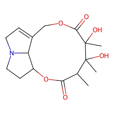 | CCSBASE_d73a0e77a8ab260bd6a7b6cc094968dd | Monocrotaline | [M+H]+ | 326.1598 | 0.7 | 172.12 | CC1C(=O)OC2CCN3C2C(=CC3)COC(=O)C(C1(C)O)(C)O | Organoheterocyclic compounds | 1 | 1 | TW | polyala | ||
