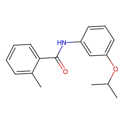| CCSBASE_0f9ef207f16c6fab014a79892a93b65f | Mepronil | [M-H]- | 268.1343 | 0.86 | 173.26 | CC1=CC=CC=C1C(=O)NC2=CC(=CC=C2)OC(C)C | Benzenoids | -1 | 1 | TW | polyala |