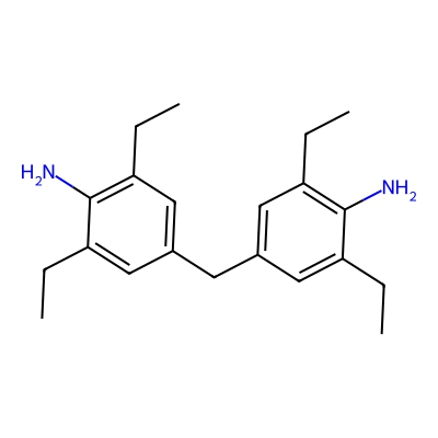 | CCSBASE_ddc29b211b6d414c14874bbbd5864a58 | 4,4'-Methylenebis(2,6-diethylaniline) | [M+H]+ | 311.2482 | 0.83 | 192.28 | CCC1=CC(=CC(=C1N)CC)CC2=CC(=C(C(=C2)CC)N)CC | Benzenoids | 1 | 1 | TW | polyala | ||
