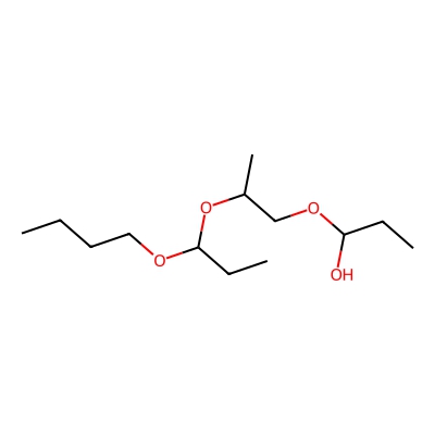 | CCSBASE_ac4696562ca0f888eeebbca7dbb51081 | Tripropylene glycol butyl ether | [M+K]+ | 287.162 | 0.89 | 166.92 | CCCCOC(CC)OC(C)COC(CC)O | Organic oxygen compounds | 1 | 1 | TW | polyala | ||