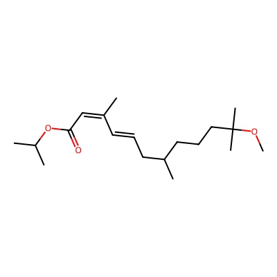 | CCSBASE_94a1ae8baf3449d009221f8f47aa6b70 | S-Methoprene | [M+FA-H]- | 355.249 | 0.91 | 186.57 | CC(C)OC(=O)C=C(C)C=CCC(C)CCCC(C)(C)OC | Lipids and lipid-like molecules | -1 | 1 | TW | polyala | ||