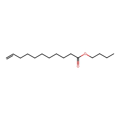 | CCSBASE_60f920152a89ca9bb2447dc3b3131e86 | Butyl undec-10-enoate | [M+FA-H]- | 285.2071 | 0.91 | 169.61 | CCCCOC(=O)CCCCCCCCC=C | Lipids and lipid-like molecules | -1 | 1 | TW | polyala | ||