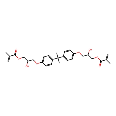 | CCSBASE_47d5c3c338f4afc3915ff2fb2383b051 | Bisphenol A glycidyl methacrylate | [M+FA-H]- | 557.2392 | 0.94 | 232.51 | CC(=C)C(=O)OCC(COC1=CC=C(C=C1)C(C)(C)C2=CC=C(C=C2)OCC(COC(=O)C(=C)C)O)O | Benzenoids | -1 | 1 | TW | polyala | ||