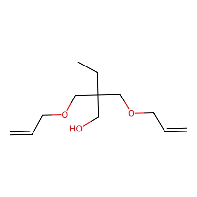 | CCSBASE_77b6df925abcc162b931d12f2af53a6f | 2,2-Bis[(prop-2-en-1-yloxy)methyl]butan-1-ol | [M-H]- | 213.1496 | 0.83 | 155.89 | CCC(CO)(COCC=C)COCC=C | Organic oxygen compounds | -1 | 1 | TW | polyala | ||