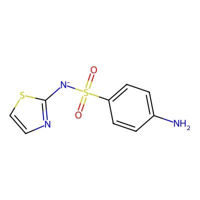 | CCSBASE_41d7ecf8168d8304b8531b3b140ee03f | Sulfathiazole sodium | [M-H]- | 254.0063 | 0.69 | 155.01 | C1=CC(=CC=C1N)S(=O)(=O)[N-]C2=NC=CS2 | Benzenoids | -1 | 1 | TW | polyala | ||