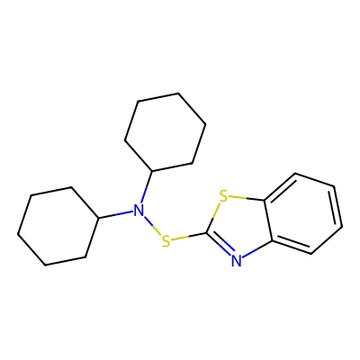 | CCSBASE_80ebd11725ef61ec1afc6d67226485e3 | N,N-Dicyclohexyl-2-benzothiazolesulfenamide | [M+Na]+ | 369.143 | 0.76 | 175.88 | C1CCC(CC1)N(C2CCCCC2)SC3=NC4=CC=CC=C4S3 | Organoheterocyclic compounds | 1 | 1 | TW | polyala | ||