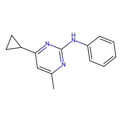 | CCSBASE_3f0164191afe051d8e0ed733b35235af | Cyprodinil | [M+H]+ | 226.1339 | 0.91 | 154.22 | CC1=CC(=NC(=N1)NC2=CC=CC=C2)C3CC3 | Benzenoids | 1 | 1 | TW | polyala | ||