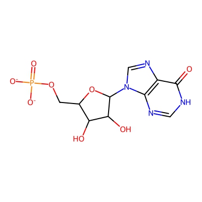 | CCSBASE_7fe43ab9359fce20fefd1d16450974db | Inosine 5'-monophosphate disodium salt hydrate | [M-H]- | 347.0398 | 0.48 | 173.22 | C1=NC2=C(C(=O)N1)N=CN2C3C(C(C(O3)COP(=O)([O-])[O-])O)O | Lignans, neolignans and related compounds | -1 | 1 | TW | polyala | ||