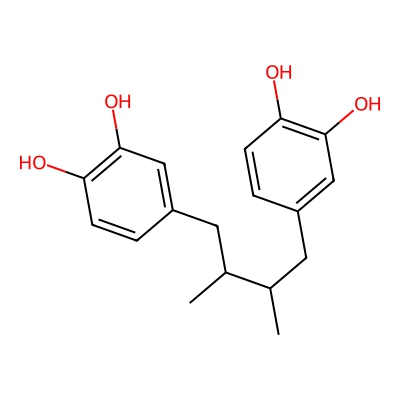 | CCSBASE_210c97c9e0e8ce8b3a513b0f4a366039 | Nordihydroguaiaretic acid | [M-H]- | 301.1445 | 0.84 | 168.73 | CC(CC1=CC(=C(C=C1)O)O)C(C)CC2=CC(=C(C=C2)O)O | Organoheterocyclic compounds | -1 | 1 | TW | polyala | ||