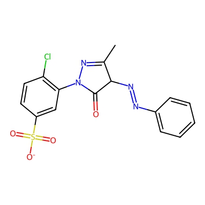 | CCSBASE_7e7e8e7853960463d873ab62f3a4b7e9 | C.I. Acid Yellow 34, monosodium salt | [M+H]+ | 393.0419 | 0.87 | 191.06 | CC1=NN(C(=O)C1N=NC2=CC=CC=C2)C3=C(C=CC(=C3)S(=O)(=O)[O-])Cl | None | 1 | 1 | TW | polyala | ||