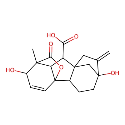 | CCSBASE_25e2353464321e302b7fb3cb201e8683 | Gibberellic acid | [M+Na]+ | 369.1308 | 0.73 | 182.31 | CC12C(C=CC3(C1C(C45C3CCC(C4)(C(=C)C5)O)C(=O)O)OC2=O)O | Organic acids and derivatives | 1 | 1 | TW | polyala |