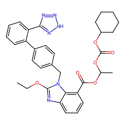 | CCSBASE_670f2612109a0067012b261911f7d2ed | Candesartan cilexetil | [M+H]+ | 611.2613 | 0.95 | 224.97 | CCOC1=NC2=CC=CC(=C2N1CC3=CC=C(C=C3)C4=CC=CC=C4C5=NNN=N5)C(=O)OC(C)OC(=O)OC6CCCCC6 | Organoheterocyclic compounds | 1 | 1 | TW | polyala | ||