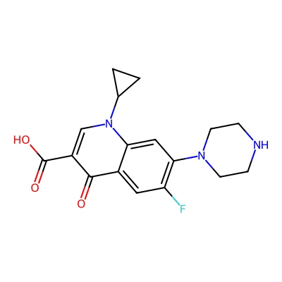 | CCSBASE_2c268ecf0427bf60e5bc42eb6f5de8ea | Ciprofloxacin | [M+H]+ | 332.1405 | 0.71 | 183.78 | C1CC1N2C=C(C(=O)C3=CC(=C(C=C32)N4CCNCC4)F)C(=O)O | Benzenoids | 1 | 1 | TW | polyala | ||