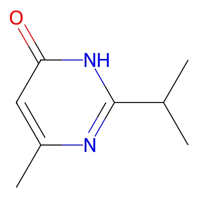 | CCSBASE_0c18f9a59cba50311117c88a4b5eeead | 2-Isopropyl-6-methyl-4-pyrimidone | [M-H]- | 151.0877 | 0.74 | 139.68 | CC1=CC(=O)NC(=N1)C(C)C | None | -1 | 1 | TW | polyala | ||