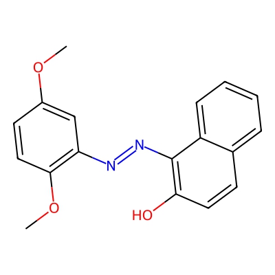 | CCSBASE_5e07519f77c2dcc3458b8c48066d229d | C.I. Solvent Red 80 | [M+H]+ | 309.1234 | 1.06 | 168.53 | COC1=CC(=C(C=C1)OC)N=NC2=C(C=CC3=CC=CC=C32)O | None | 1 | 1 | TW | polyala |