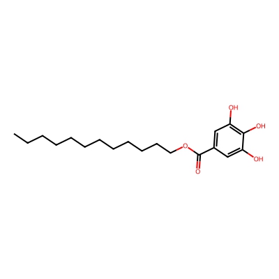 | CCSBASE_3dabca3eef6582042f92389478a0c7e3 | Lauryl gallate | [M-H]- | 337.202 | 1.05 | 188.79 | CCCCCCCCCCCCOC(=O)C1=CC(=C(C(=C1)O)O)O | Organoheterocyclic compounds | -1 | 1 | TW | polyala | ||