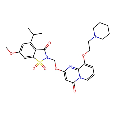 | CCSBASE_2dda27b466129e17f9819a157234d649 | SSR69071 | [M+Na]+ | 579.1884 | 0.83 | 230.08 | CC(C)C1=C2C(=CC(=C1)OC)S(=O)(=O)N(C2=O)COC3=CC(=O)N4C=CC=C(C4=N3)OCCN5CCCCC5 | Organoheterocyclic compounds | 1 | 1 | TW | polyala | ||