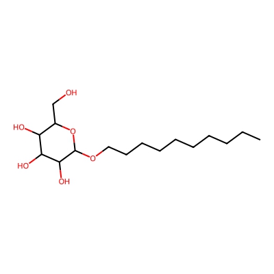 | CCSBASE_77a129512cad1be2c30f8420e692fc3a | Decyl beta-D-glucopyranoside | [M+Na]+ | 343.2091 | 0.94 | 188.03 | CCCCCCCCCCOC1C(C(C(C(O1)CO)O)O)O | Lipids and lipid-like molecules | 1 | 1 | TW | polyala | ||