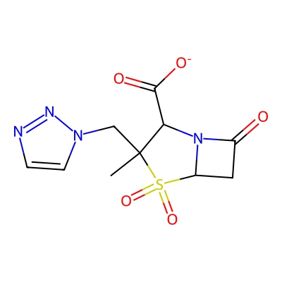 | CCSBASE_3b813bd693445f17dfafba47f81f7587 | Tazobactam sodium | [M-H]- | 299.0455 | 0.69 | 160.53 | CC1(C(N2C(S1(=O)=O)CC2=O)C(=O)[O-])CN3C=CN=N3 | Organic acids and derivatives | -1 | 1 | TW | polyala | ||