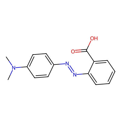 | CCSBASE_af8308739e435c1b3662fd52b12ec5a1 | Methyl red | [M-H]- | 268.1091 | 0.91 | 174.25 | CN(C)C1=CC=C(C=C1)N=NC2=CC=CC=C2C(=O)O | Organoheterocyclic compounds | -1 | 1 | TW | polyala | ||