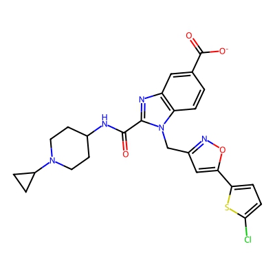 | CCSBASE_c63ba8c931b4a27de2cf9ffc5ba92380 | AVE3247 | [M-H]- | 524.1165 | 0.77 | 248.04 | C1CC1N2CCC(CC2)NC(=O)C3=NC4=C(N3CC5=NOC(=C5)C6=CC=C(S6)Cl)C=CC(=C4)C(=O)[O-] | Organoheterocyclic compounds | -1 | 1 | TW | polyala |