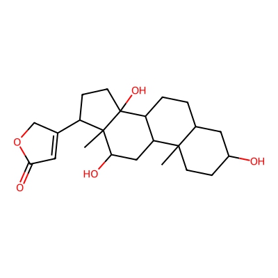 | CCSBASE_2c0e772ac97e54fea5c76c8cb1f1baf8 | Digoxigenin | [M+H]+ | 391.2479 | 0.76 | 193.65 | C[C@]12CC[C@@H](C[C@H]1CC[C@@H]3[C@@H]2C[C@H]([C@]4([C@@]3(CC[C@@H]4C5=CC(=O)OC5)O)C)O)O | Lipids and lipid-like molecules | 1 | 1 | TW | polyala |