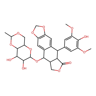| CCSBASE_b76f7a05f81abbe6468345fa51c65bd8 | Etoposide | [M-H]- | 587.177 | 0.76 | 221.25 | CC1OCC2C(O1)C(C(C(O2)OC3C4COC(=O)C4C(C5=CC6=C(C=C35)OCO6)C7=CC(=C(C(=C7)OC)O)OC)O)O | Lignans, neolignans and related compounds | -1 | 1 | TW | polyala | ||
