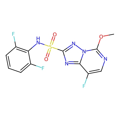 | CCSBASE_580053a2ff688df34bab498727e56ae9 | Florasulam | [M+Na]+ | 382.0192 | 0.79 | 179.09 | COC1=NC=C(C2=NC(=NN21)S(=O)(=O)NC3=C(C=CC=C3F)F)F | Benzenoids | 1 | 1 | TW | polyala | ||