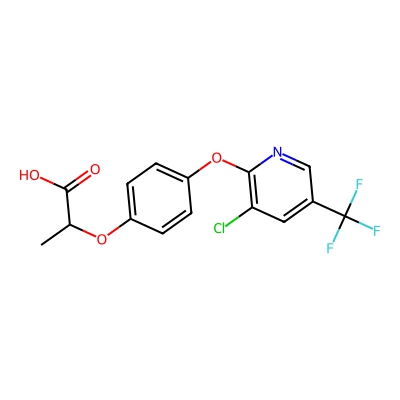 | CCSBASE_af2f30d3b7e2965d732d5018631cbf54 | Haloxyfop | [M+H]+ | 362.0401 | 0.95 | 178.8 | CC(C(=O)O)OC1=CC=C(C=C1)OC2=C(C=C(C=N2)C(F)(F)F)Cl | Benzenoids | 1 | 1 | TW | polyala | ||