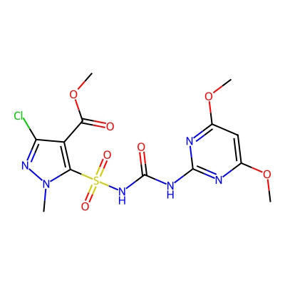 | CCSBASE_f2243630b1b2bf76cea75cf21ea41340 | Halosulfuron-methyl | [M+H]+ | 435.0484 | 0.93 | 190.08 | CN1C(=C(C(=N1)Cl)C(=O)OC)S(=O)(=O)NC(=O)NC2=NC(=CC(=N2)OC)OC | Organoheterocyclic compounds | 1 | 1 | TW | polyala | ||
