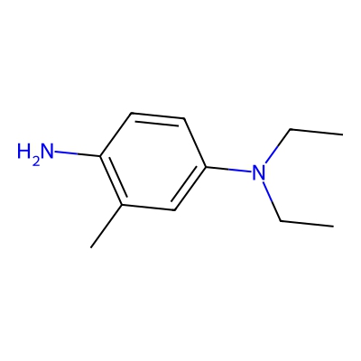 | CCSBASE_da85749feec3a926fb35d08d34be41f8 | N4,N4-Diethyl-2-methylbenzene-1,4-diamine hydrochloride | [M+Cl]- | 213.1164 | 0.76 | 152.52 | CCN(CC)C1=CC(=C(C=C1)N)C | Organic nitrogen compounds | -1 | 1 | TW | polyala | ||