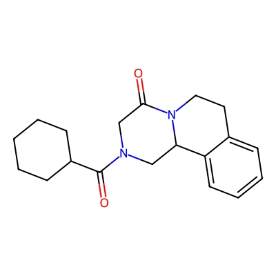 | CCSBASE_d3887dc307cfd63874605857304498aa | Praziquantel | [M+H]+ | 313.1911 | 0.9 | 176.45 | C1CCC(CC1)C(=O)N2CC3C4=CC=CC=C4CCN3C(=O)C2 | Organoheterocyclic compounds | 1 | 1 | TW | polyala |