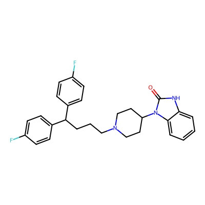 | CCSBASE_145613d8f42323551a2480eff5d7c0c1 | Pimozide | [M+H]+ | 462.2351 | 0.81 | 213.03 | C1CN(CCC1N2C3=CC=CC=C3NC2=O)CCCC(C4=CC=C(C=C4)F)C5=CC=C(C=C5)F | Benzenoids | 1 | 1 | TW | polyala | ||