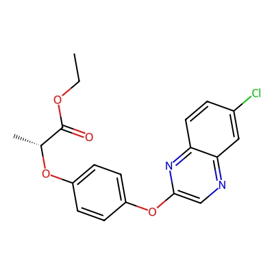 | CCSBASE_dab45bc963f9209de76b26152ba1d3ca | Quizalofop-P-ethyl | [M+H]+ | 373.095 | 1.03 | 190.48 | CCOC(=O)[C@@H](C)OC1=CC=C(C=C1)OC2=CN=C3C=C(C=CC3=N2)Cl | Benzenoids | 1 | 1 | TW | polyala | ||