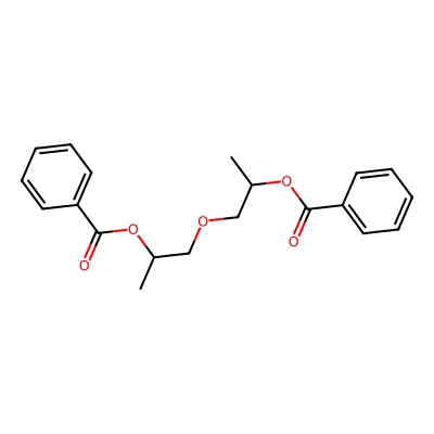 | CCSBASE_ea317bfa2d96e671260093006787b74f | Di(propylene glycol) dibenzoate | [M+Na]+ | 365.1359 | 1.0 | 185.26 | CC(COCC(C)OC(=O)C1=CC=CC=C1)OC(=O)C2=CC=CC=C2 | Benzenoids | 1 | 1 | TW | polyala | ||