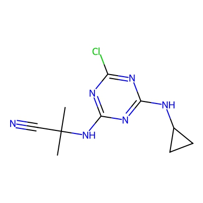 | CCSBASE_9a97a5b3851906156d564f41e25ed7fe | Procyazine | [M+H]+ | 253.0963 | 0.78 | 158.91 | CC(C)(C#N)NC1=NC(=NC(=N1)NC2CC2)Cl | Organoheterocyclic compounds | 1 | 1 | TW | polyala | ||