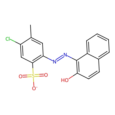 | CCSBASE_b839889d5236b06d5d292b2f28919b2e | D&C Red 9 | [M+H-H2O]+ | 359.0253 | 0.96 | 173.57 | CC1=CC(=C(C=C1Cl)S(=O)(=O)[O-])N=NC2=C(C=CC3=CC=CC=C32)O | Benzenoids | 1 | 1 | TW | polyala | ||