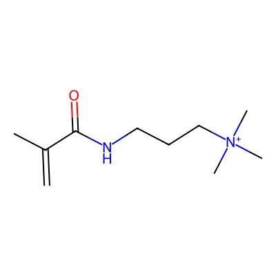 | CCSBASE_bf2c7229bac3be3544e763a987c04647 | N,N,N-Trimethyl-3-[(2-methylacryloyl)amino]propan-1-aminium chloride | [M]+ | 185.1648 | 0.67 | 146.16 | CC(=C)C(=O)NCCC[N+](C)(C)C | Organic nitrogen compounds | 1 | 1 | TW | polyala | ||