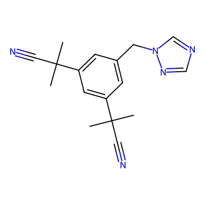 | CCSBASE_c5ab373e4a4077e5706630aa5769f568 | Anastrozole | [M+H]+ | 294.1713 | 0.76 | 182.78 | CC(C)(C#N)C1=CC(=CC(=C1)CN2C=NC=N2)C(C)(C)C#N | Benzenoids | 1 | 1 | TW | polyala |